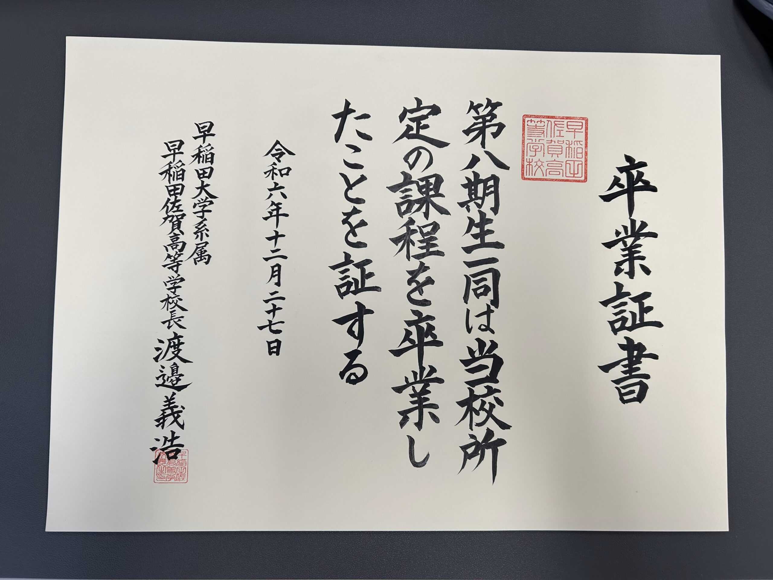 12月27日に、新型コロナウイルス感染拡大の影響で卒業式が中止となった本校8期生(2019年度卒業生)を対象に、5年越しの卒業式を挙行いたしました。